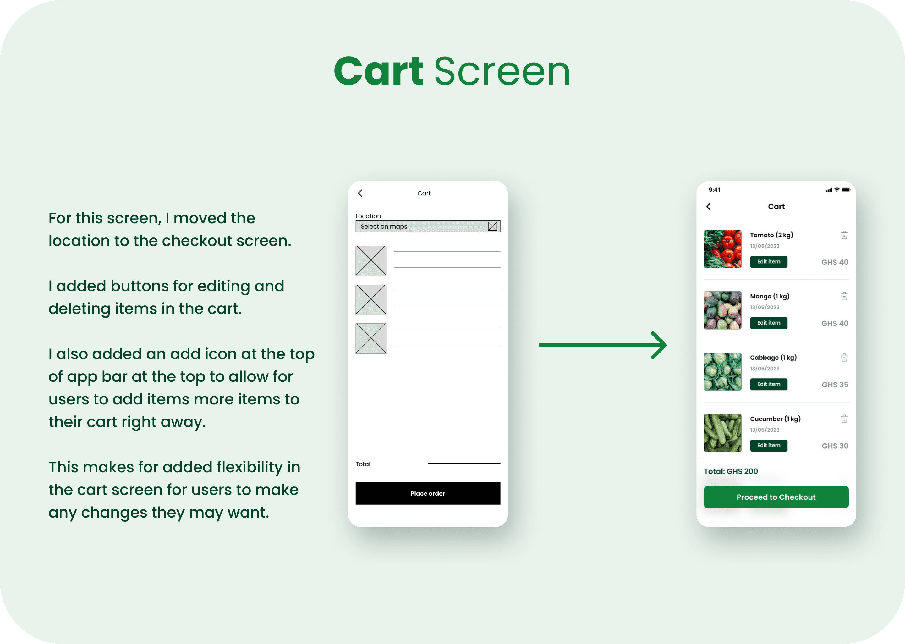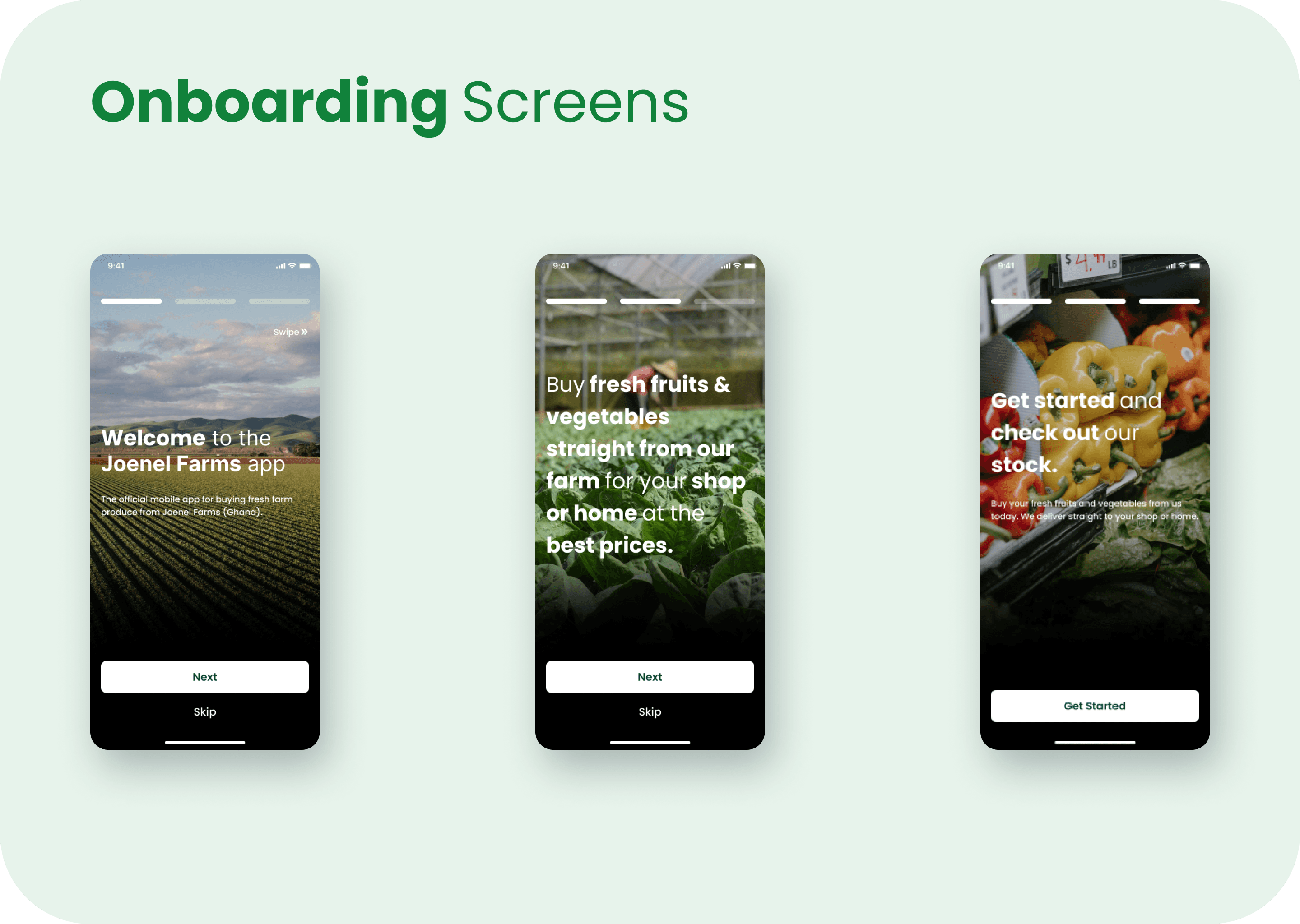 Problem Statement Joenel Farms wants to expand its customer base and make it easy for customers to purchase fresh produce and livestock products. However, current sales channels are limited and do not reach a wider audience. To address this issue, I designed an E-commerce App that aims to offer a convenient and seamless purchasing experience for customers. The challenge is to develop an app that meets the needs and expectations of customers while overcoming technical challenges.