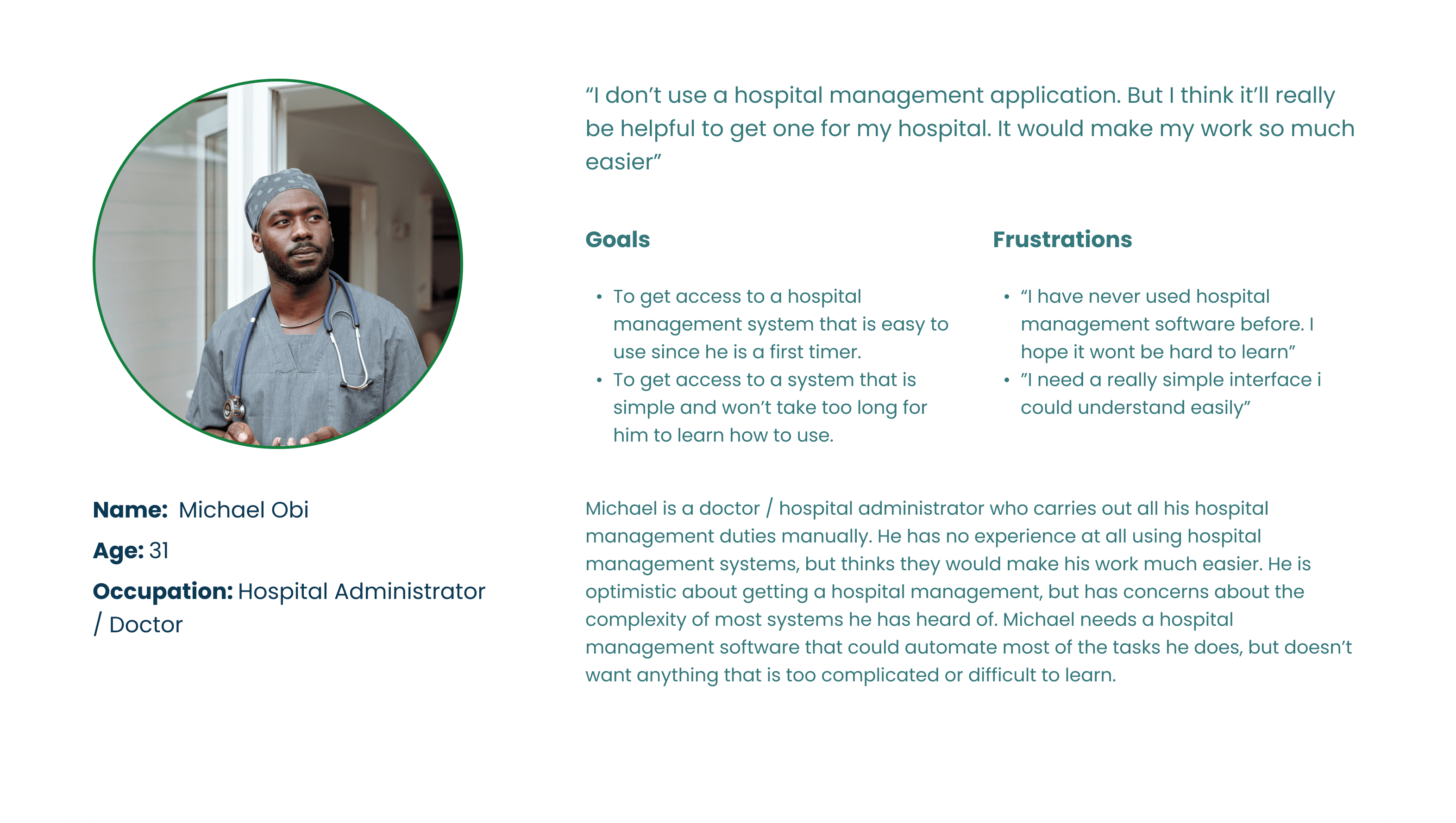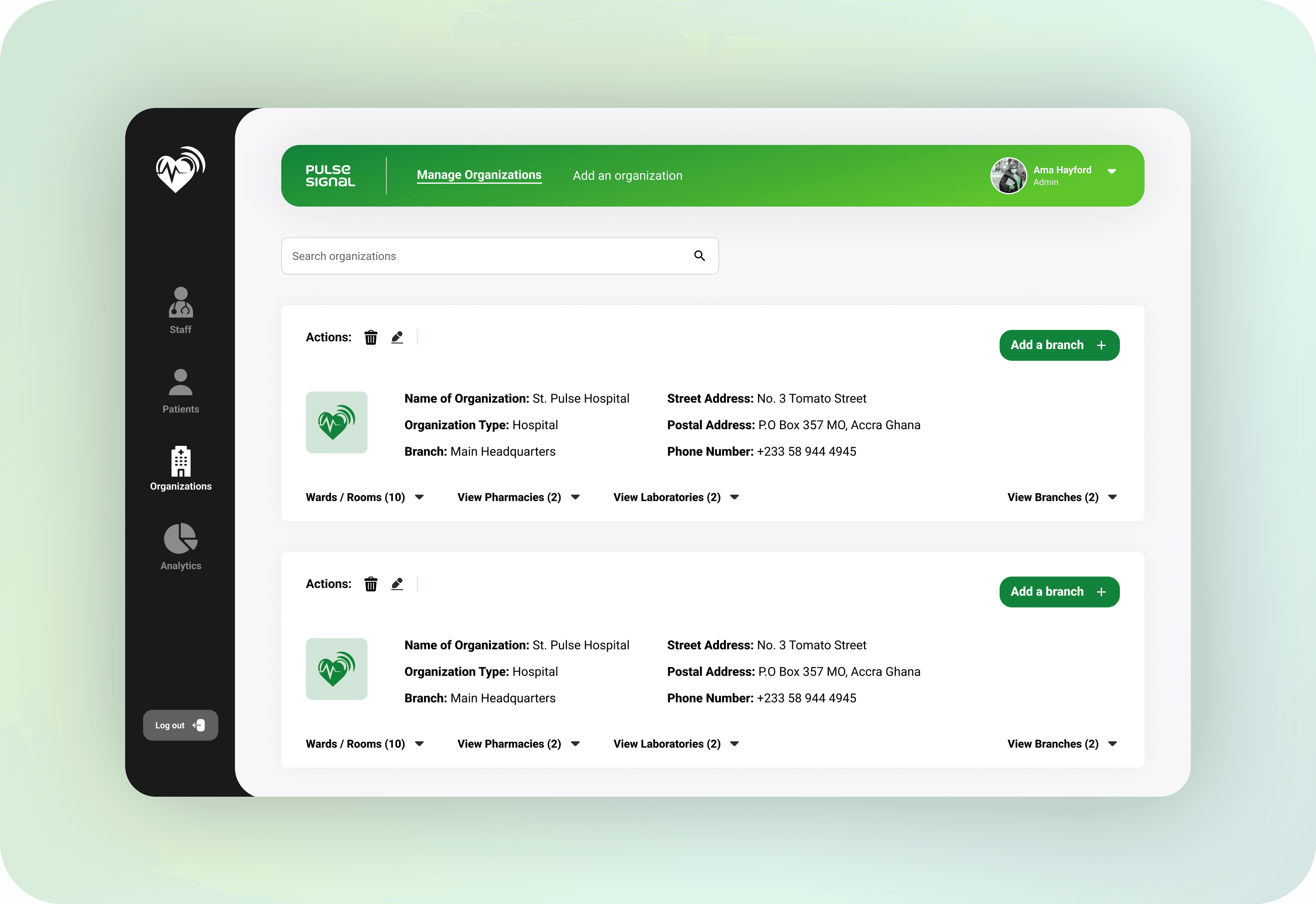 Research Summary The research I did for the Pulse Signals hospital management application included a range of methods to understand user needs, preferences, and pain points. The research included interviews, surveys, and usability testing with hospital administrators, doctors, nurses, and other healthcare professionals, to fully understand the needs of hospital administrators, and how their work affects healthcare delivey and their interaction with other healthcare workers in their hospitals.